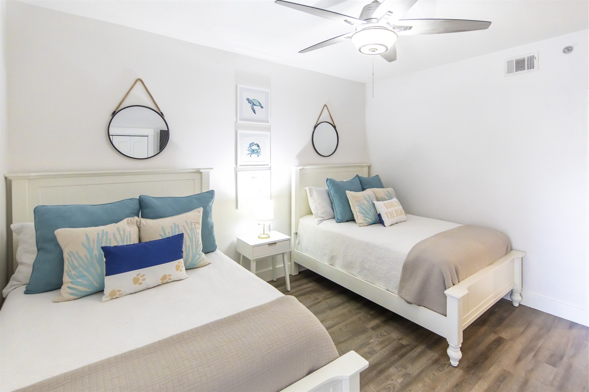 You will be sure to love the decor----fully remodeled kitchen, quartz throughout, two King size masters and one guest bedroom with two full size beds. The living room as well as poolside master bedroom has a brand new 65" smart TV. We also have upgraded cable, HIGH SPEED INTERNET, and a charging station in each bedroom and living room. Two beach chairs and an umbrella are included with your stay during peak season (March to October).